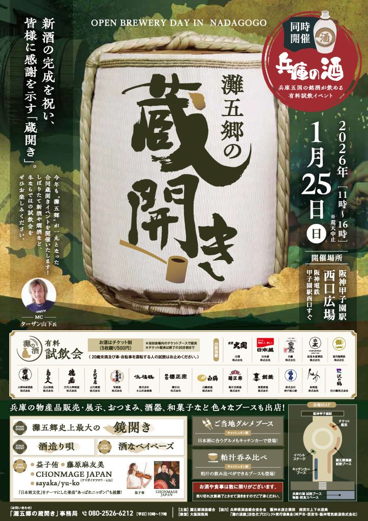 灘酒造組合が1月25日(日)、新酒の完成を祝い、「灘五郷」が一丸となって合同蔵開きイべントを開催します。